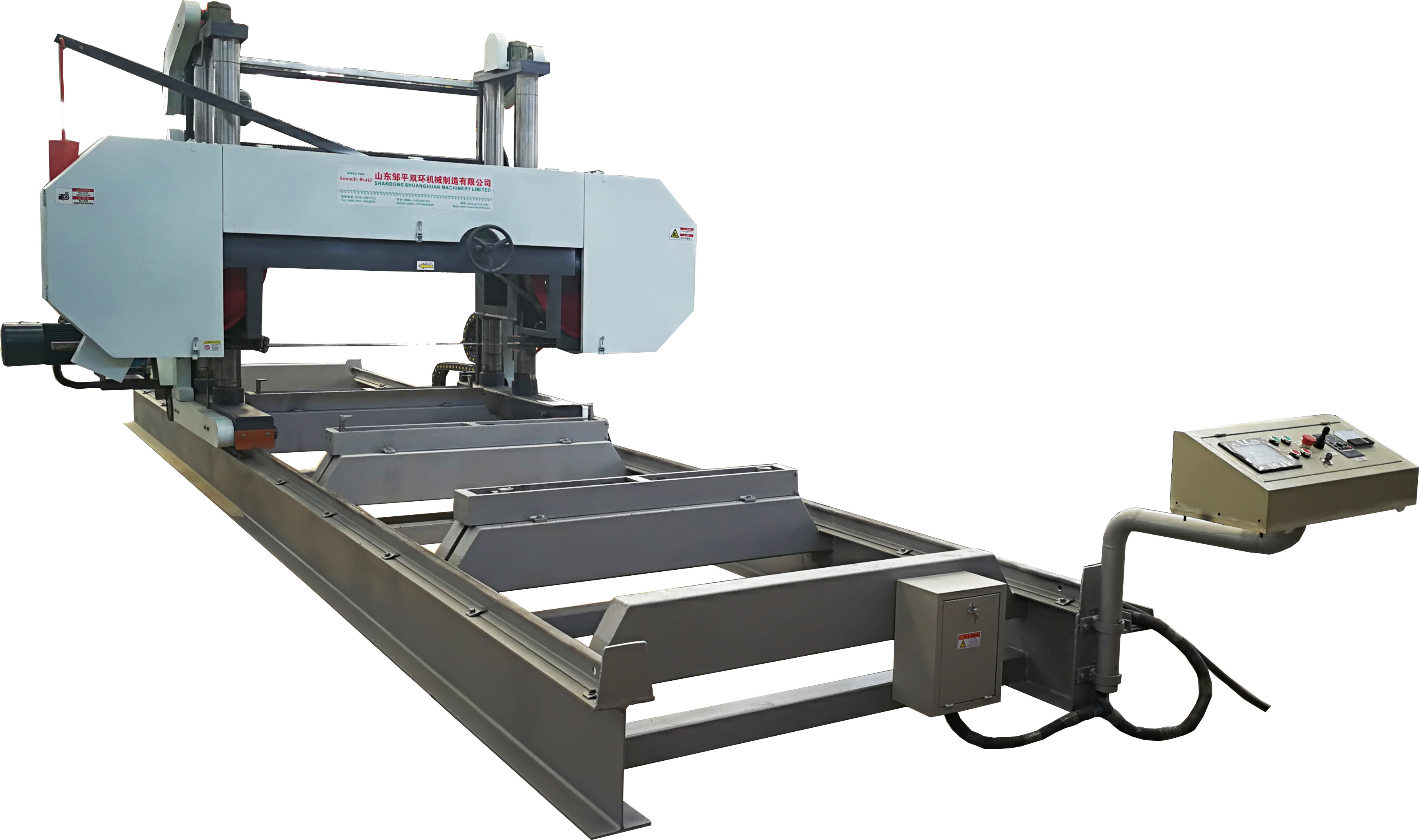 Napięcie piły taśmowej elektrycznej i śrubowej Bezstopniowa regulacja prędkości do przodu i do tyłu Ustawienie grubości cięcia ekranu dotykowego Szafa sterownicza i fotele zabudowane na tartaku 4 grupowy pilnik do drewna na kartę mobilną. |